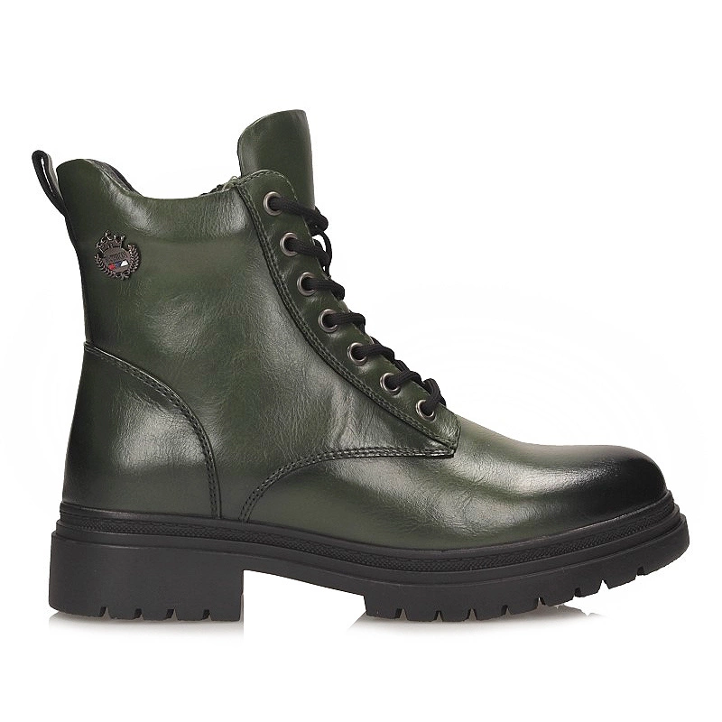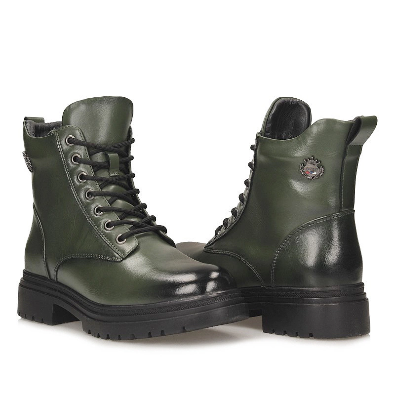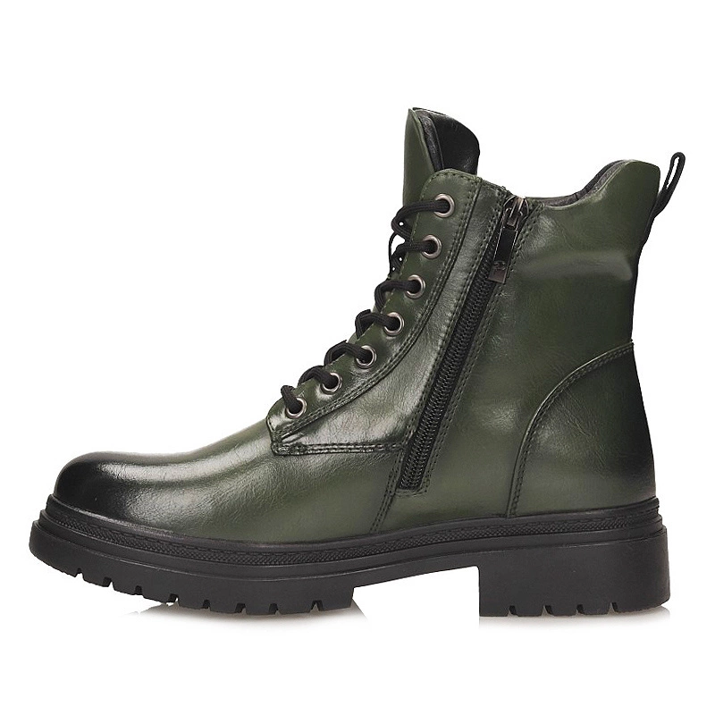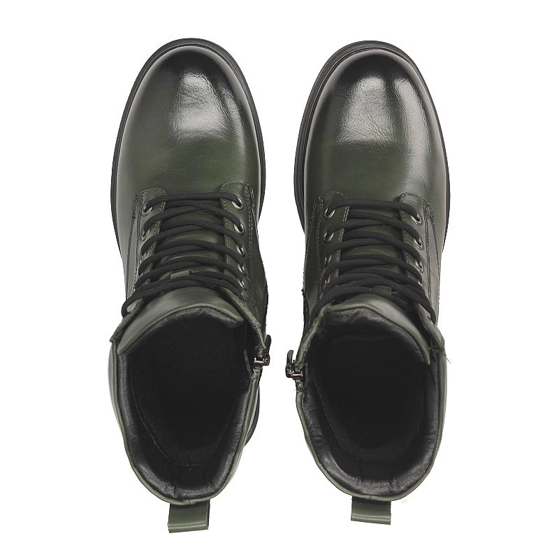 Zielone botki trzewiki damskie na płaskim obcasie znanej i szanowanej marki Potocki pochodzące z najnowszej kolekcji.
