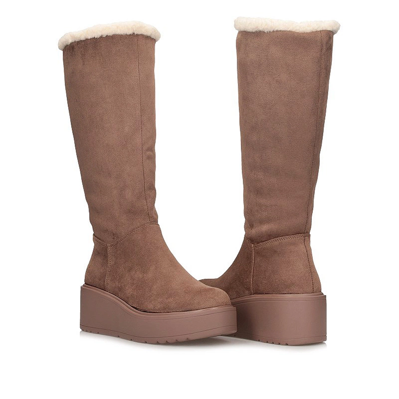Modne beżowe botki śniegowce damskie na platformie znanej i szanowanej marki Potocki pochodzące z najnowszej kolekcji.