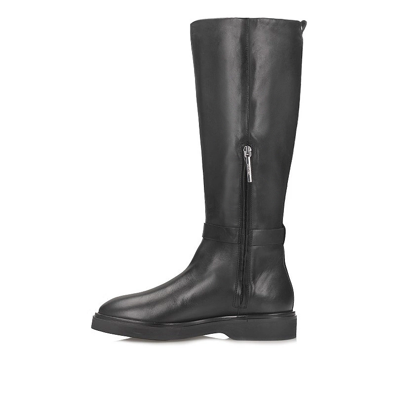 Płaska podeszwa z niskim obcasem 2,5 cm odciąża stopy podczas długich dni, zapewniając stabilność na chodnikach i w biurze. Cholewka o wysokości do kolan chroni łydkę przed chłodem i deszczem, a smukła linia optycznie wydłuża nogę.