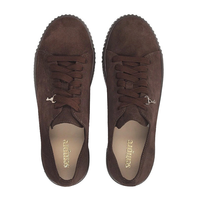 • Półbuty sneakersy damskie na platformie Sempre 23-777 Brąz Welur