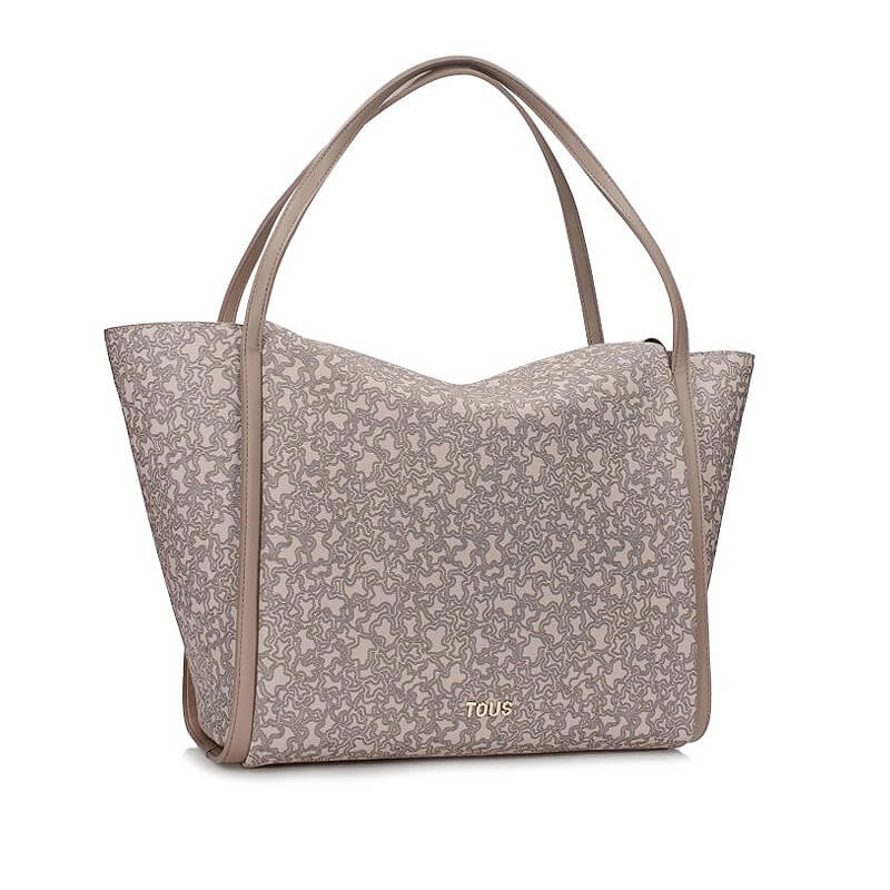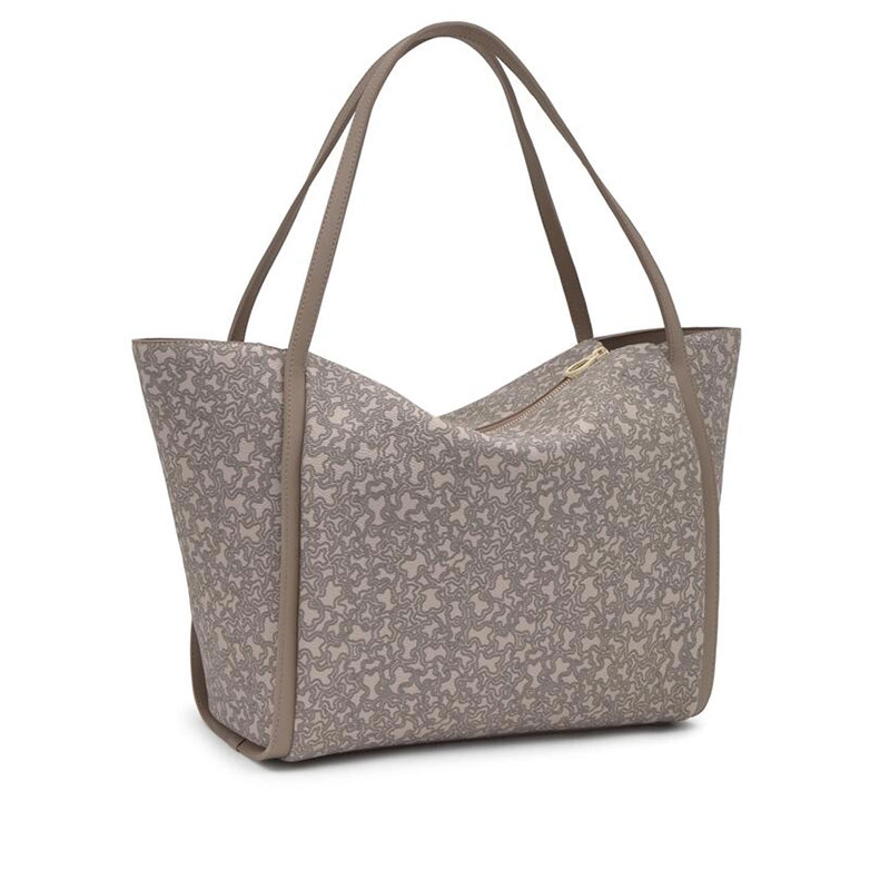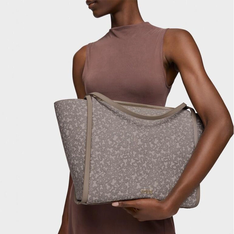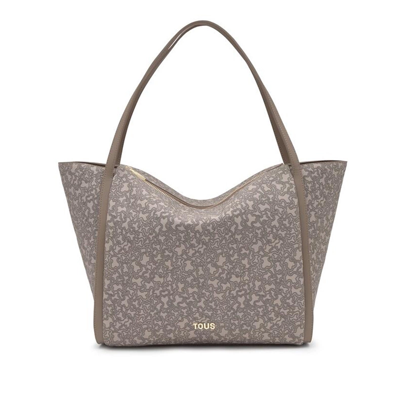 Duża torebka damska Tous CAPAZO z ekoskóry w kolorze szarym i beżowym