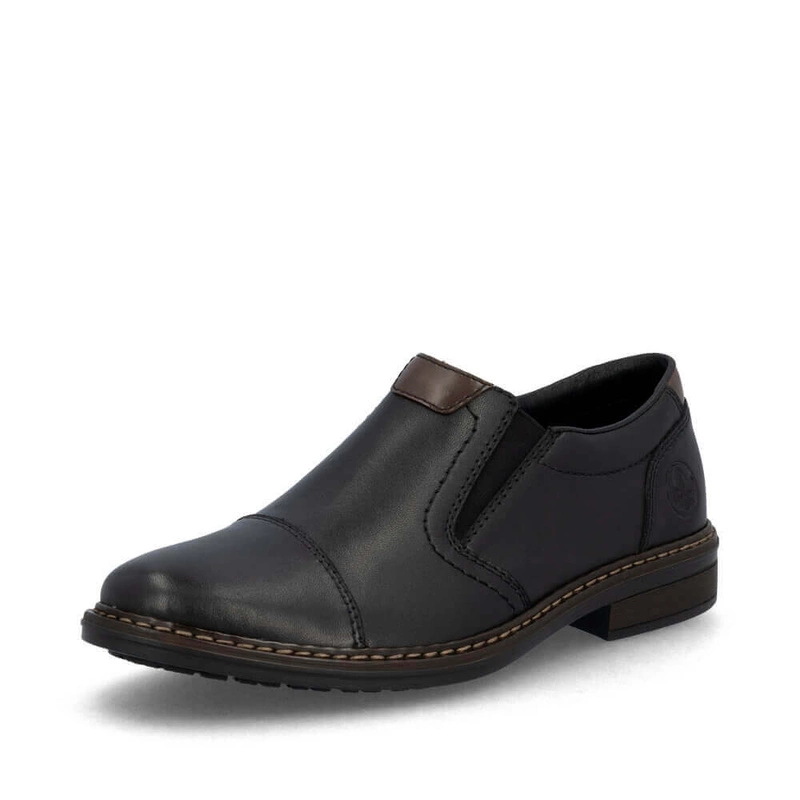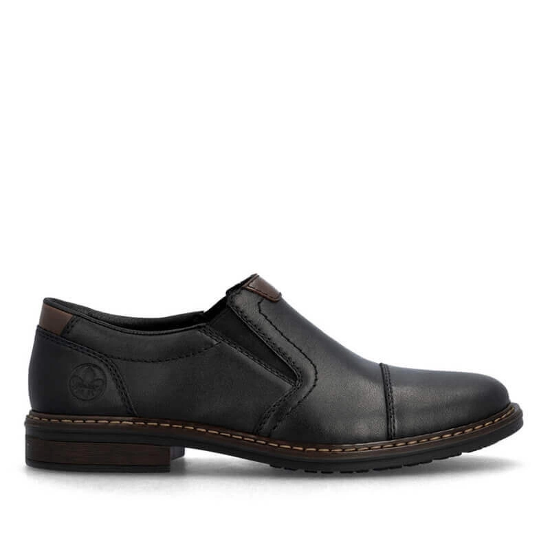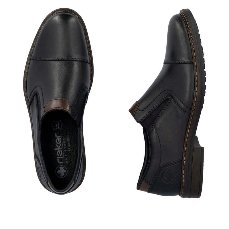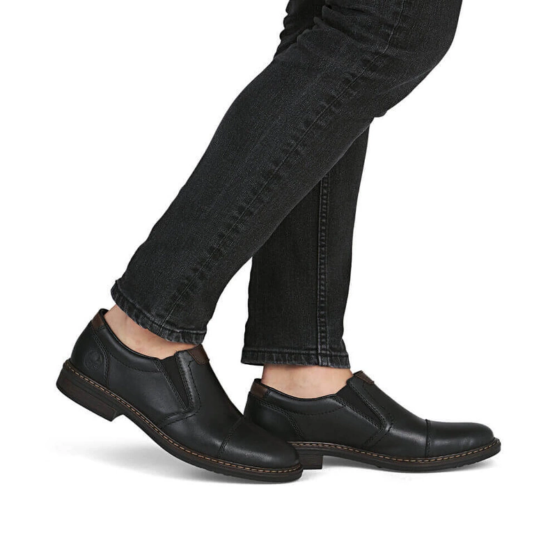 Półbuty męskie wsuwane — czarne, skóra licowa