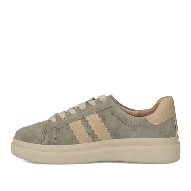 Zewnętrzny materiał wykonany ze skóry zamszowej zapewnia odporność na zużycie przy odpowiedniej pielęgnacji, a połączenie wnętrza ze skóry naturalnej i materiału tekstylnego daje lepszą oddychalność oraz miękkie dopasowanie do stopy. Przykłady zastosowania: długie dni w ruchu (np. zakupy, dojazd do pracy), krótkie wyjazdy weekendowe, gdy potrzebujesz obuwia, które nie obciąża stopy podczas wielogodzinnego chodzenia.