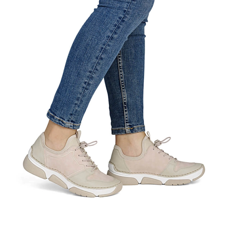 • Półbuty damskie Rieker 45970-31 beżowe sznurowane
