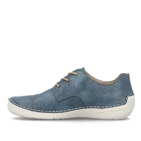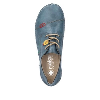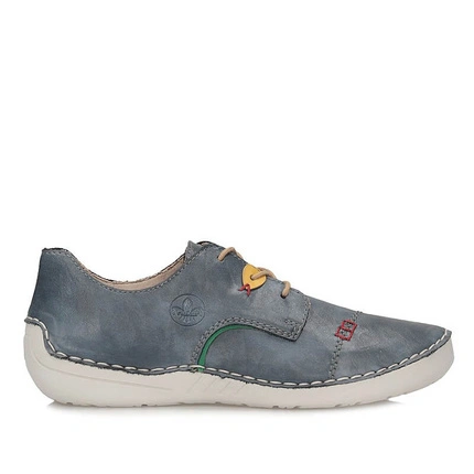 Model 52528-14 od Rieker to stylowe półbuty w odcieniu niebieskim, łączące schludny wygląd z praktycznymi rozwiązaniami konstruktorskimi. Projekt skupia się na codziennym komforcie i łatwym dopasowaniu do różnych stylów ubioru.
