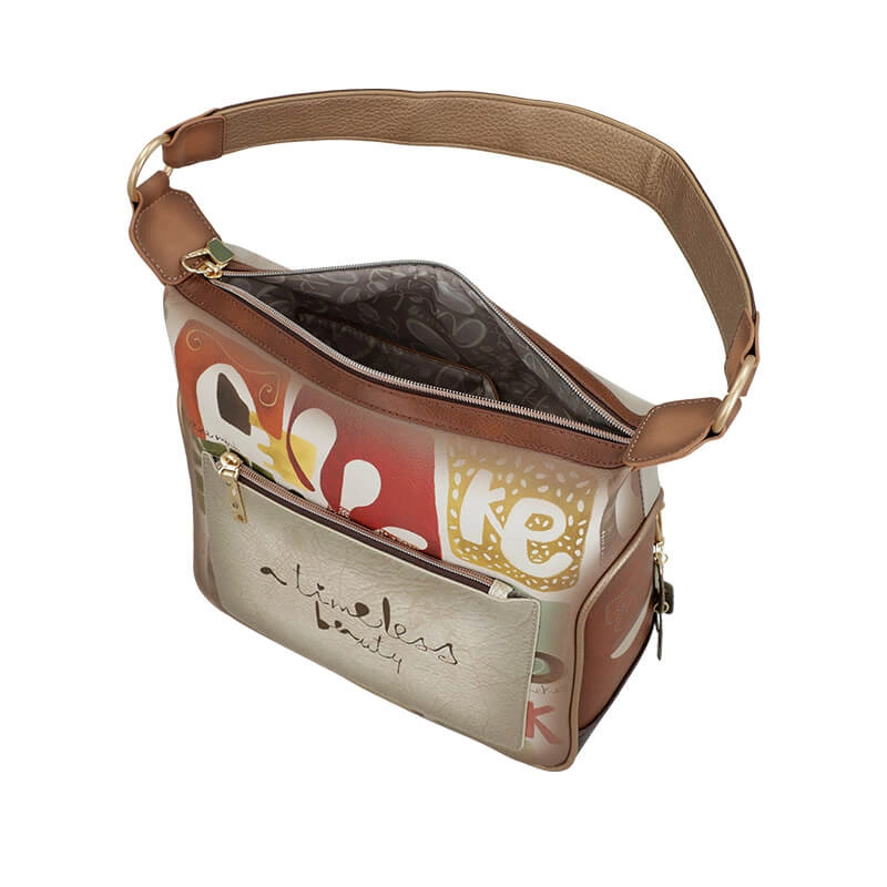 Wykonana ze skóry ekologicznej wersja w beżowych tonach łączy elegancję z łatwością utrzymania: delikatna powierzchnia jest odporna na codzienne zabrudzenia i szybko się czyści, co sprawia, że zachowa estetyczny wygląd przez dłuższy czas. Jej niewielkie rozmiary pozwalają na komfortowe noszenie na ramieniu bez nadmiernego obciążenia — idealna podczas spacerów po mieście, szybkich zakupów lub spotkań przy kawie, kiedy potrzebne są tylko niezbędne rzeczy typu portfel, telefon i klucze.