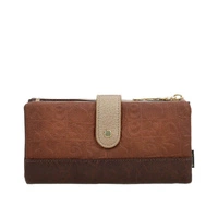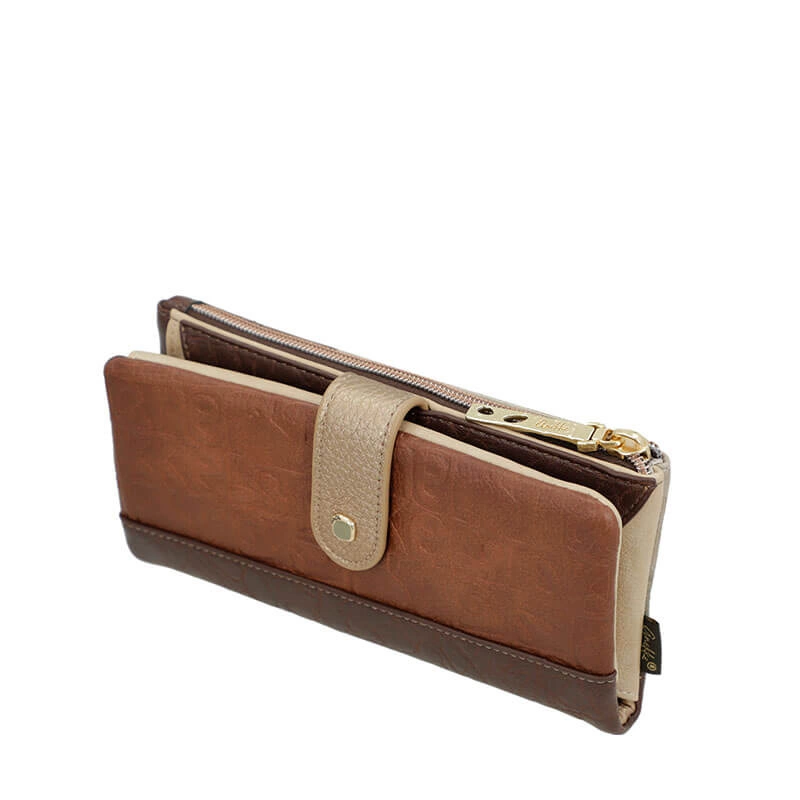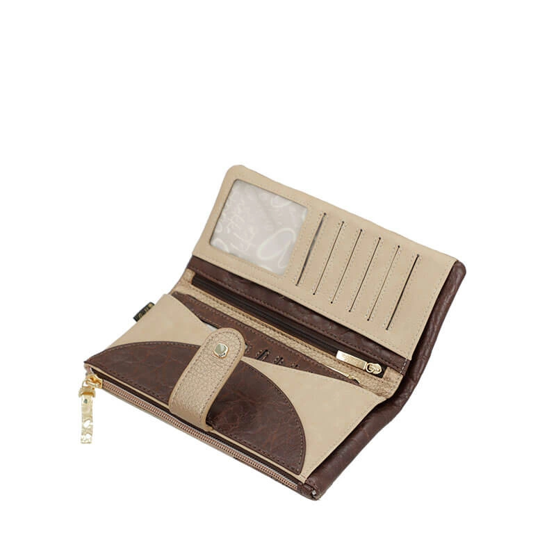 Portfel syntetyczny (skóra ekologiczna) w kolorach beżowym i brązowym — estetyka i przyjemna w dotyku powłoka