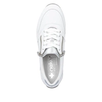 Sneakersy damskie skórzane — biało-srebrne