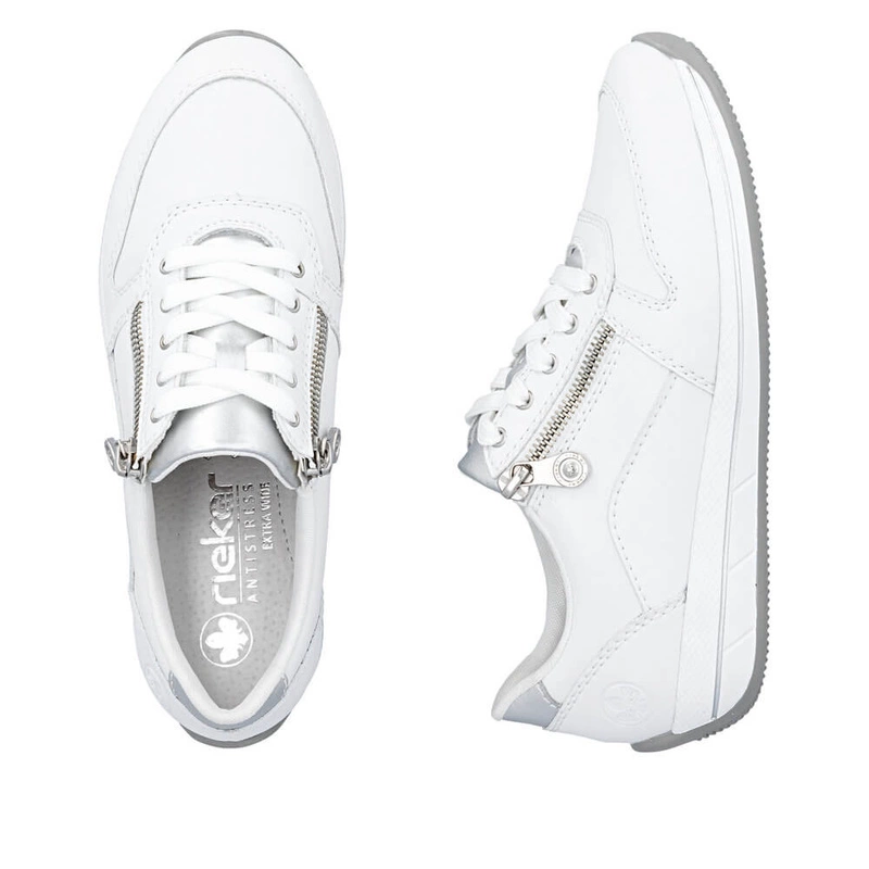 Płaska podeszwa oferuje stabilne podparcie przy codziennym użytkowaniu, a technologia Rieker Antistress dodaje amortyzacji i sprężystości przy każdym kroku. Taka konstrukcja jest idealna na dojazdy komunikacją miejską, zakupy czy zwiedzanie – zmniejsza zmęczenie stóp przy dłuższym chodzeniu i na nierównym terenie.