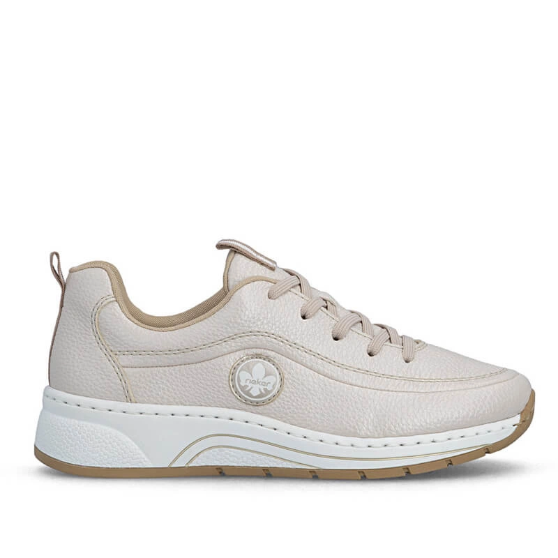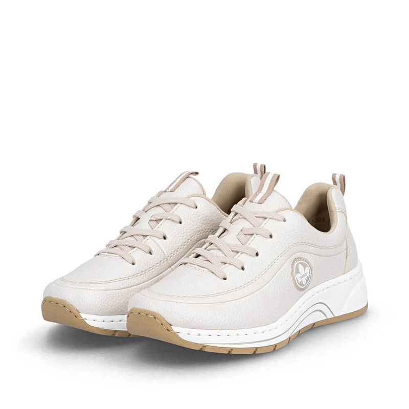 Półbuty damskie Rieker N6504-90 beżowe sznurowane na platformie