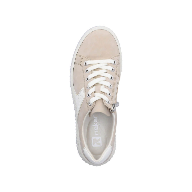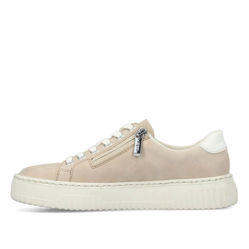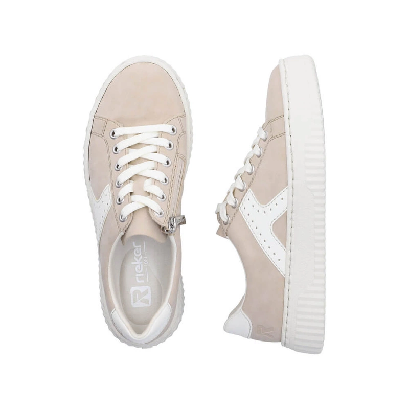 • Sneakersy damskie Rieker N9920-62 półbuty beżowe sznurowane na platformie