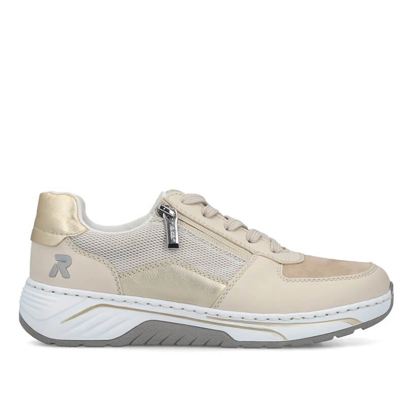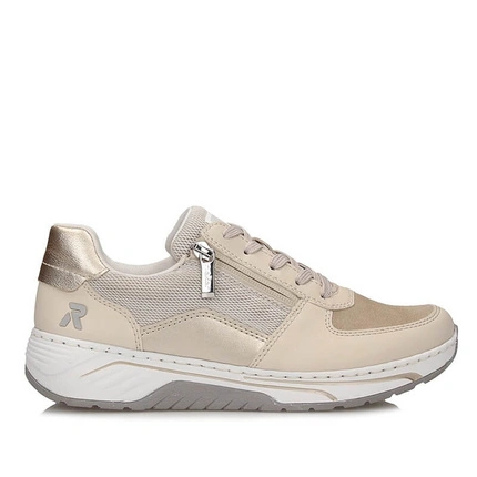 • Sneakersy damskie Rieker 53101-60 beżowe sznurowane na platformie