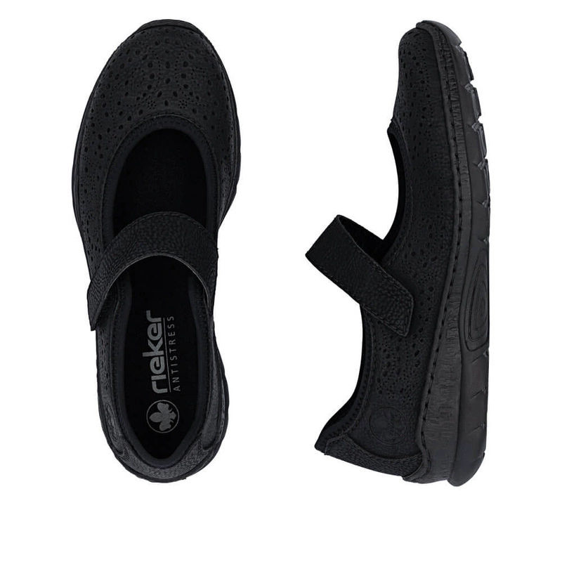 Czarne półbuty damskie na rzep — wygoda dopasowania i stabilność
