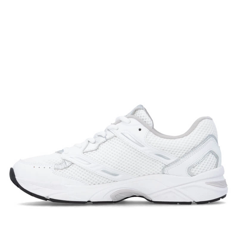 Miękka, oddychająca cholewka z materiału tekstylnego połączona z neutralną, jasną kolorystyką tworzy uniwersalny but na co dzień. Materiał zewnętrzny i tekstylne wnętrze zapewniają przewiewność podczas spacerów i miejskich dojazdów, a stonowane barwy łatwo dopasujesz do casualowych stylizacji — od spodni typu jogger po lekkie sukienki.