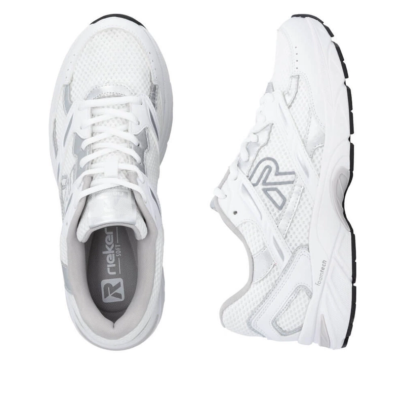 Sneakersy damskie komfortowe — biało‑szary model Rieker