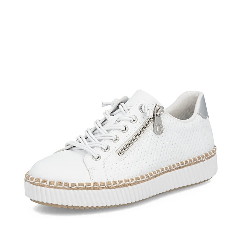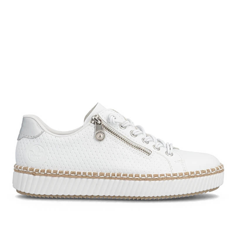 • Sneakersy Rieker M2940-80 białe półbuty na zamek dziurkowane