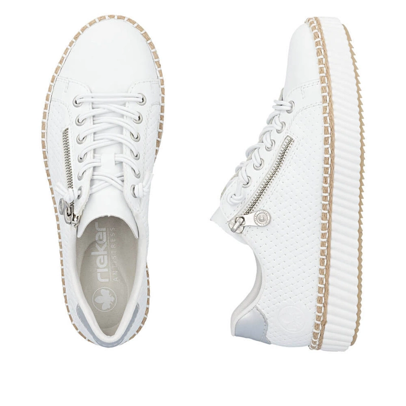 Sneakersy Rieker M2940-80 białe półbuty na zamek dziurkowane