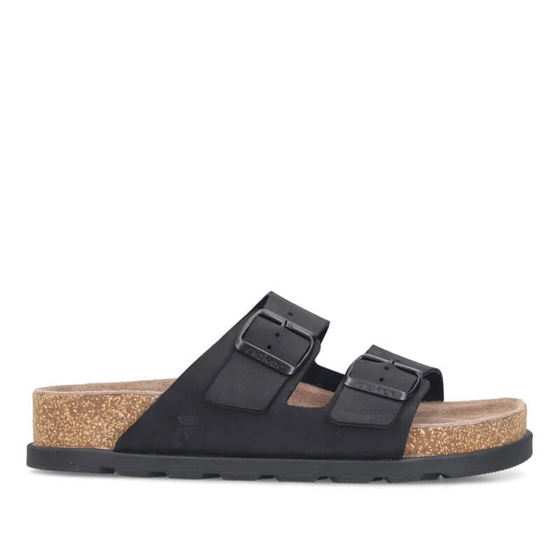 Model Rieker V3190-01 — eleganckie i praktyczne klapki idealne na cieplejsze dni, łączące naturalne materiały z lekką konstrukcją.