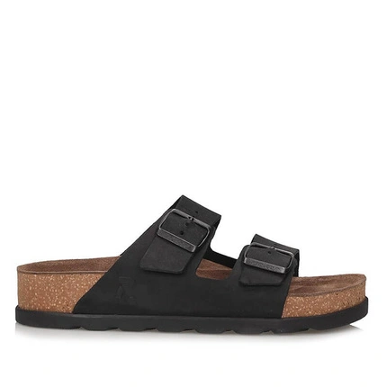 Klapki damskie wsuwane czarne — nubukowa cholewka i podeszwa na platformie