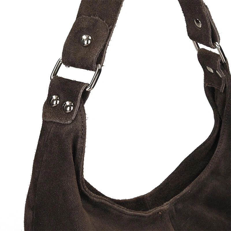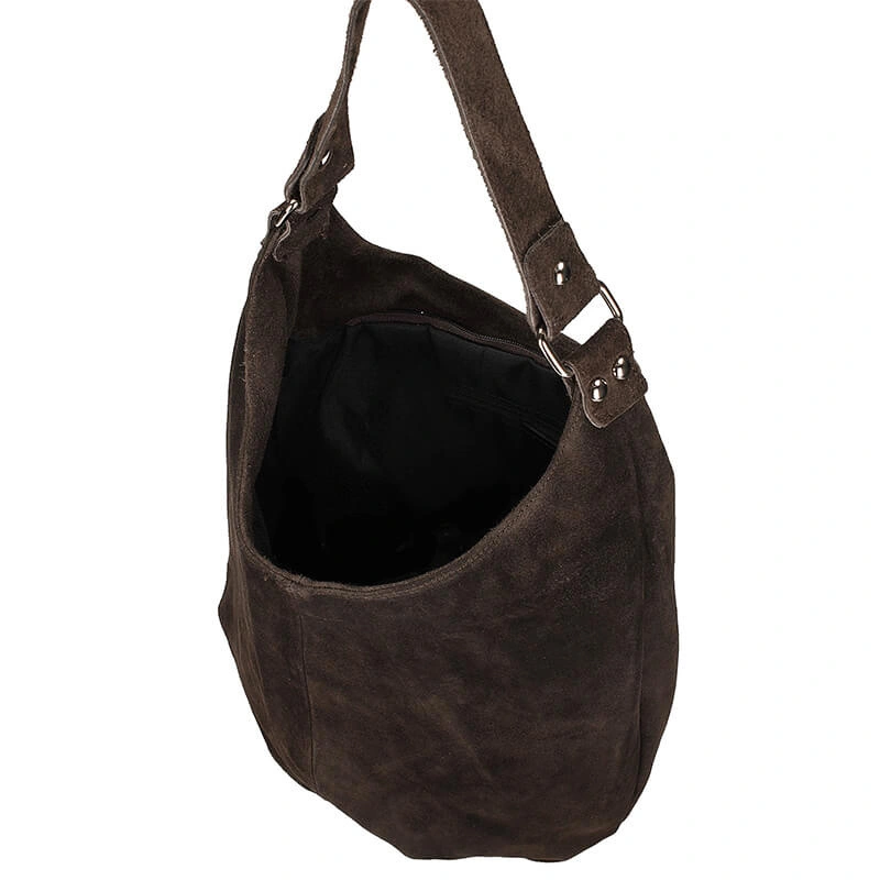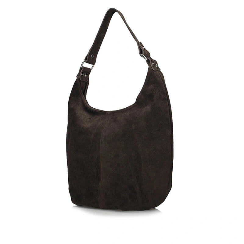 Torebka znanej i lubianej marki Toscanio pochodząca z najnowszej kolekcji. Worek wykonany z wysokiej jakości skóry naturalnej zamszowej w kolorze brązowym. Model bardzo pojemny, jednokomorowy. Wewnątrz posiada kieszeń zapinaną na zamek. Torebka zapinana na srebrny błyskawiczny zamek. Solidne i grube ramie pozwoli nosić nam ją i w ręku jak i na ramieniu.
