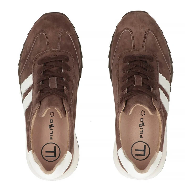 Eleganckie półbuty typu sneakers od Filippo łączą naturalny zamsz z praktycznymi rozwiązaniami konstrukcyjnymi, tworząc model odpowiedni na co dzień — od spacerów po mieście po szybkie wyjścia na kawę.