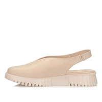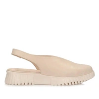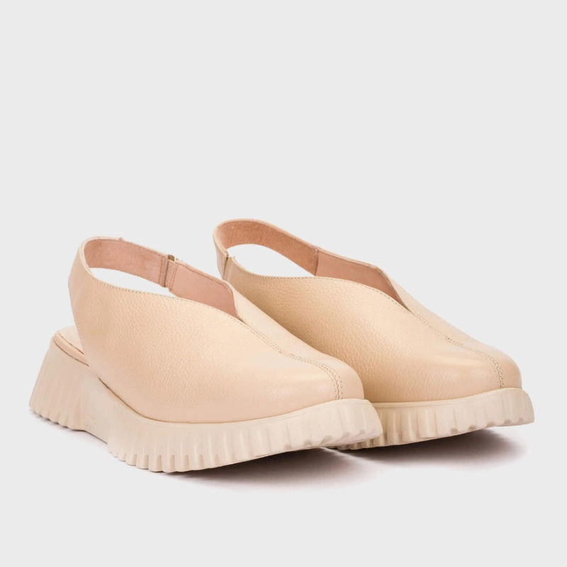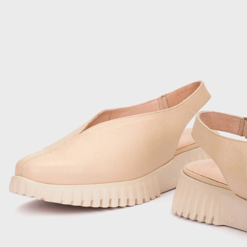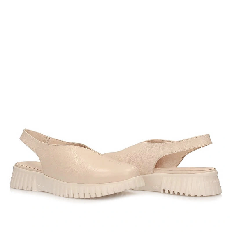 Skórzane sandały damskie w odcieniu beżu z zabudowaną przednią częścią — licowa cholewka i stabilne podparcie