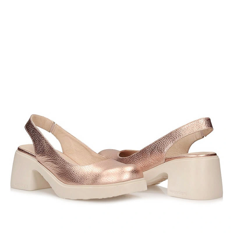 Obcas o wysokości 6,5 cm dodaje subtelnej elegancji oraz optycznie wydłuża nogi, jednocześnie zachowując stabilność przy chodzeniu po chodnikach i schodach. Zastosowanie systemu Wondersfly tłumi wstrząsy i zmniejsza zmęczenie stóp, co czyni sandały odpowiednimi na przyjęcia, służbowe wyjścia i dłuższe dni spędzone poza domem.