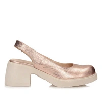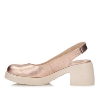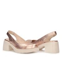 Sandały damskie z zabudowanym przodem — wsuwany fason, kolor różowy i złoty