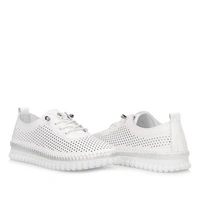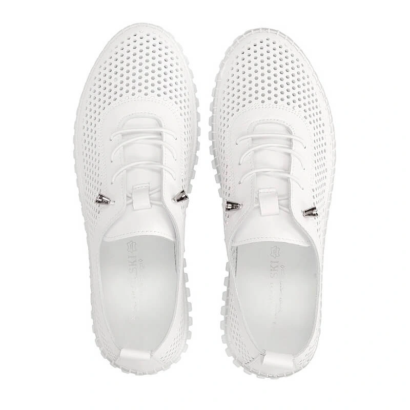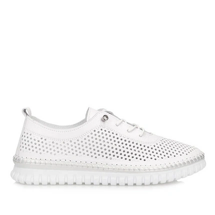 Skórzane, lekkie, dziurkowane półbuty damskie — kolor biały