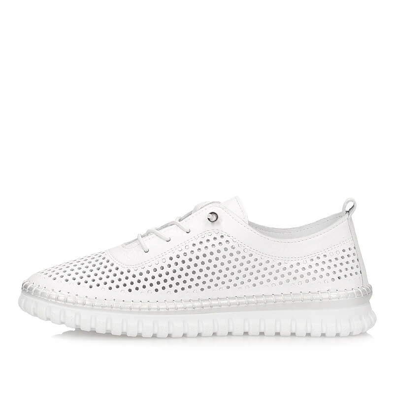 Skórzane, lekkie, dziurkowane półbuty damskie — kolor biały