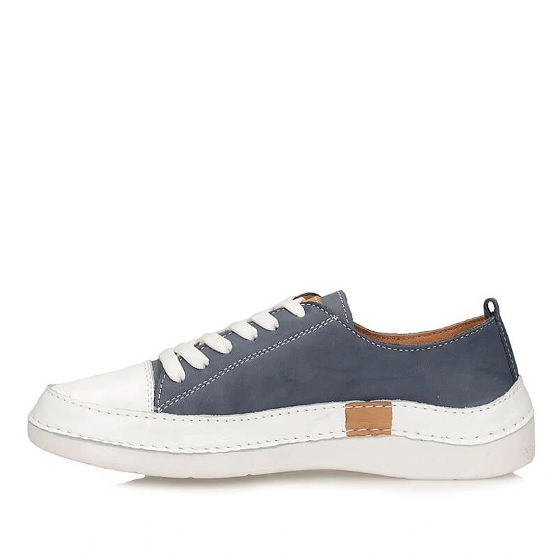 Skórzane całodzienne półbuty damskie w kolorach granatowym i białym