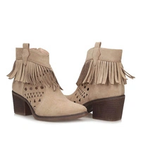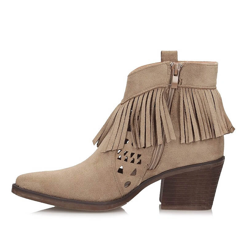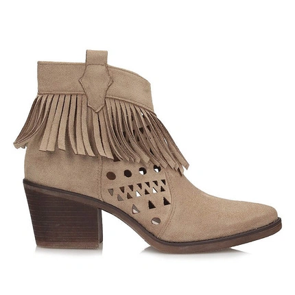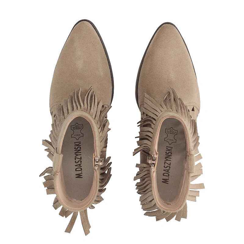 • Botki damskie M.Daszyński SA261-13 beżowe na zamek w szpic na obcasie