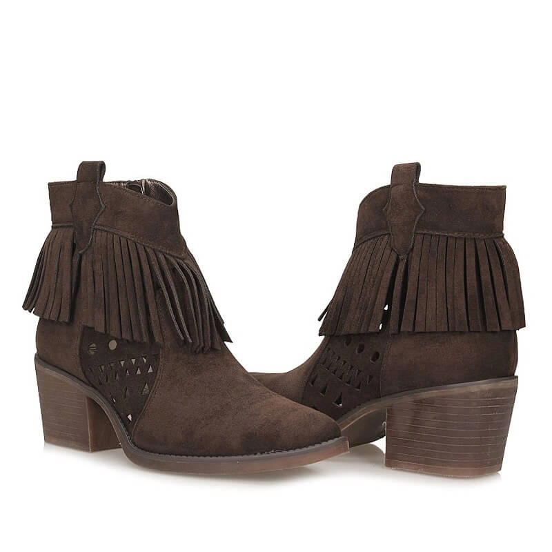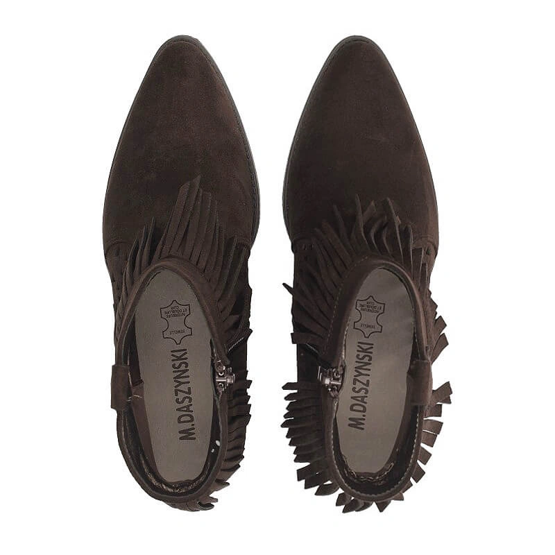• Botki damskie M.Daszyński SA261-13 brązowe na zamek w szpic na obcasie