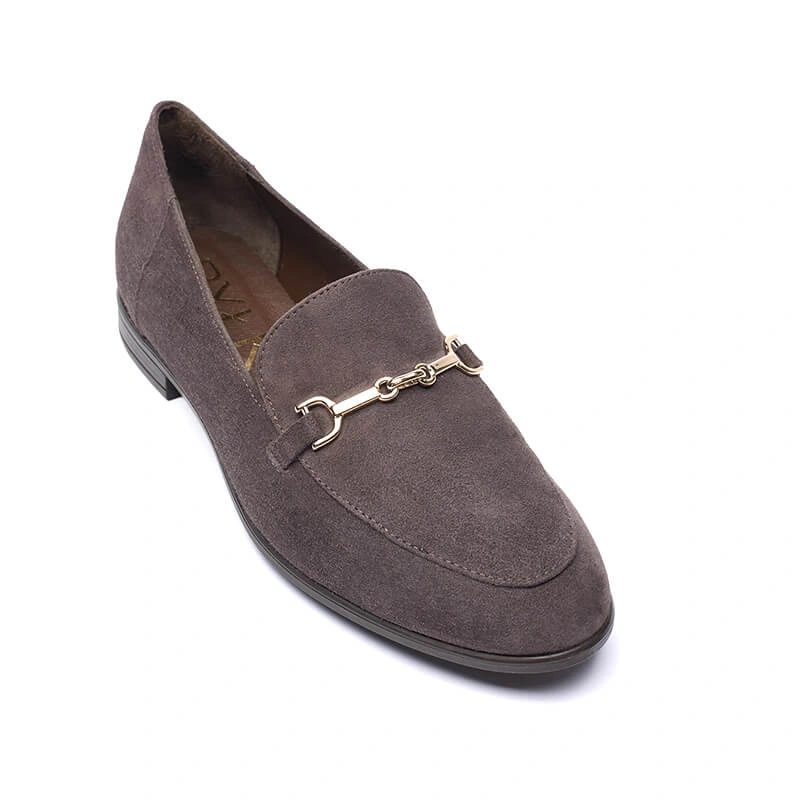 Mokasyny damskie zaprojektowane z myślą o codziennej elegancji i komforcie — brązowe lordsy wykonane ze skóry zamszowej, które łączą schludny wygląd z praktycznymi rozwiązaniami użytkowymi.