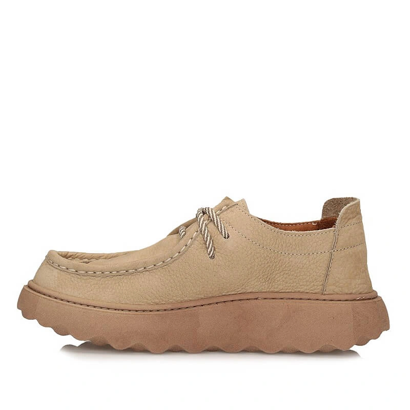 Półbuty damskie Ravini 251043 BEIGE NUBUCK beżowe barefoot sznurowane