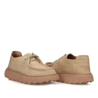 Półbuty damskie barefoot beżowe — nubukowa cholewka i stabilna platforma