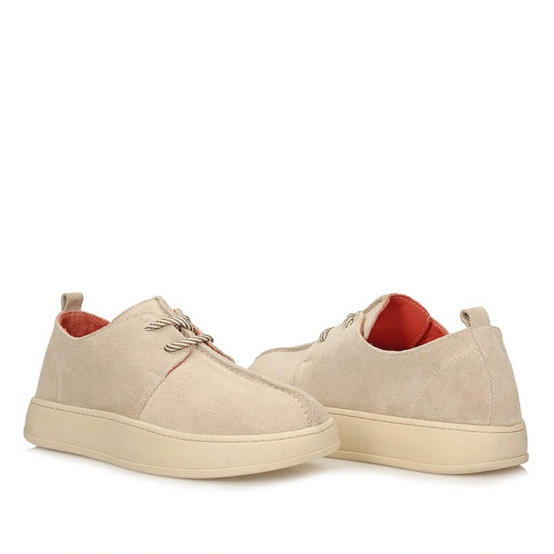 Półbuty damskie Ravini 251002 ALL BEIGE SUEDE beżowe barefoot sznurowane