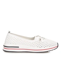 Półbuty damskie białe — skóra licowa i perforowany fason