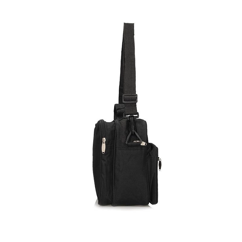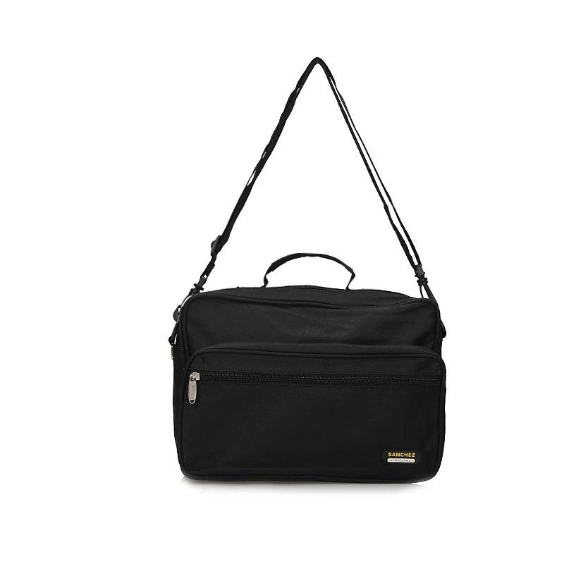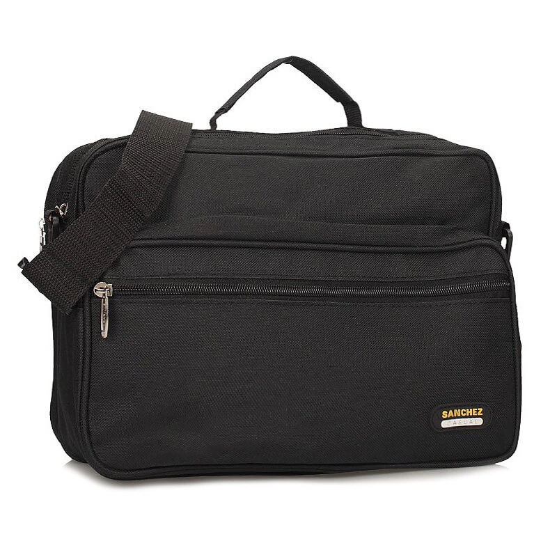Znana oraz lubiana marka Sanchez przedstawia nam torbę męską z najnowszej kolekcji jesienno-zimowej. Model został wykonany z materiału tekstylnego w odcieniu klasycznej czerni. Fason dwukomorowy, posiadający zapięcie na zamek. Z przodu znajdziemy mniejszą kieszonkę zapinaną na zamek. Przy torbie znajduje się regulowany pasek, umożliwiający noszenie torby na ramieniu lub przez ramie.
