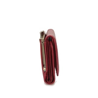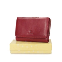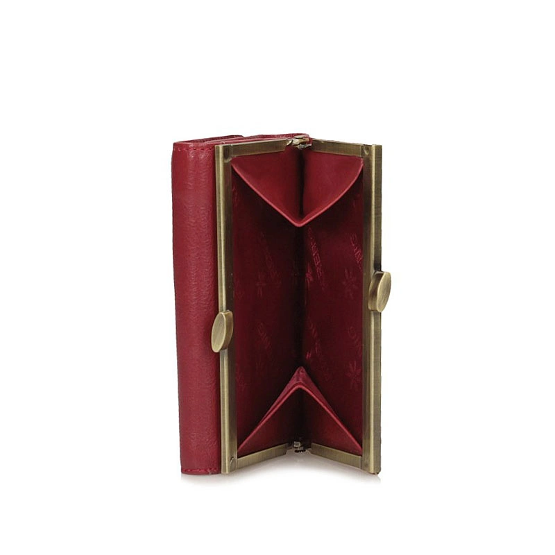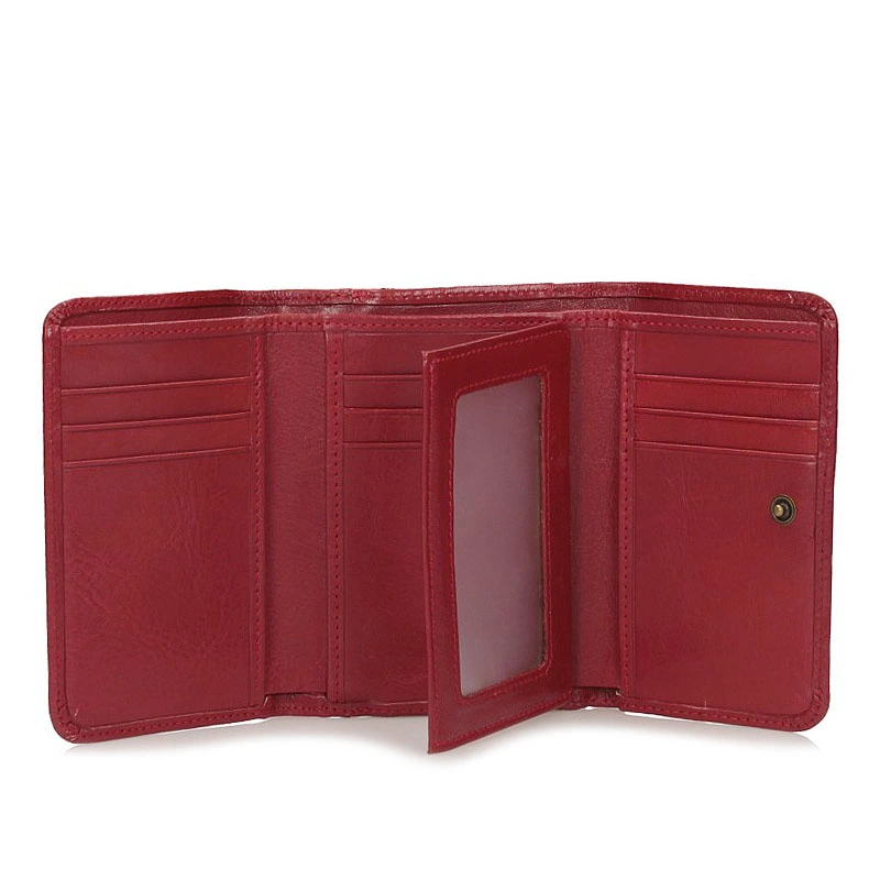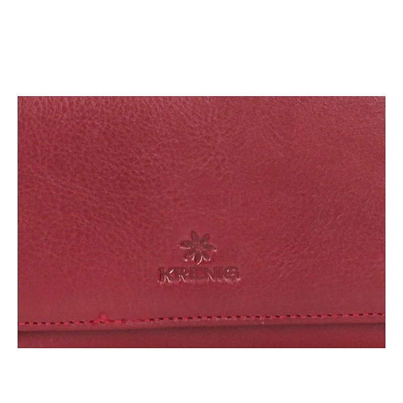 Marka Krening przedstawia nam portfel w odcieniu czerwieni. Model ten powstał z wysokiej jakości skóry naturalnej licowej. Portfel na zewnątrz posiada kieszeń na bilon zapinaną na bigiel. Wewnątrz model ten został wyposażony w kieszeń z przeznaczeniem na banknoty, 9 miejsc na karty kredytowe, dodatkowe przegrody i miejsce na zdjęcie. Delikatna ozdobą jest logo marki umieszczone na przodzie portfela. Model ten jest bardzo funkcjonalny i pojemny, sprawdzi się w użytkowaniu u każdej kobiety.