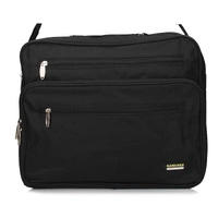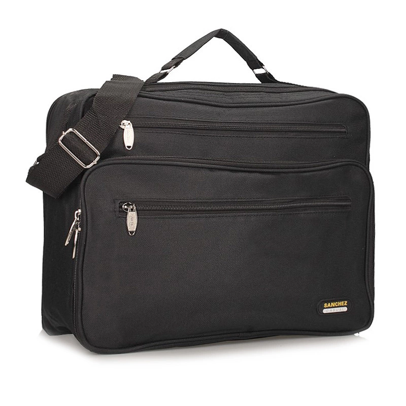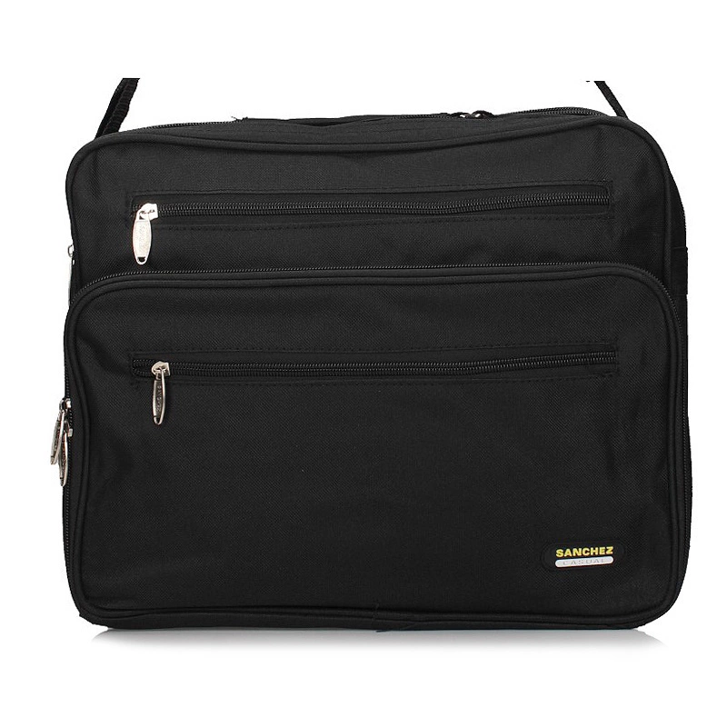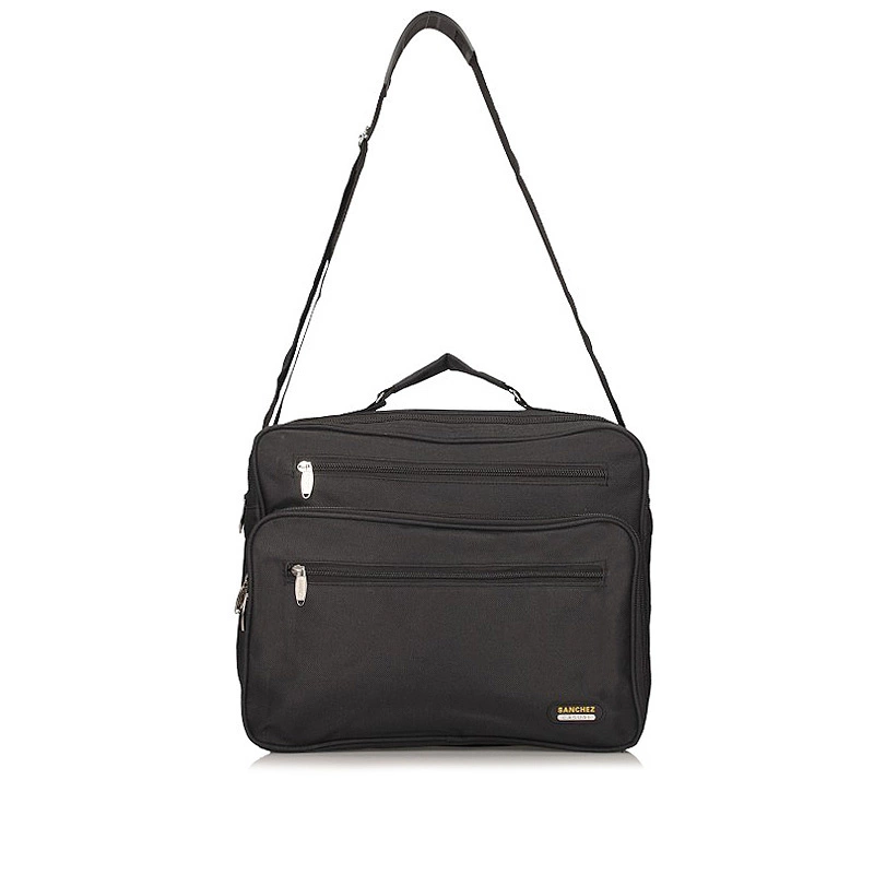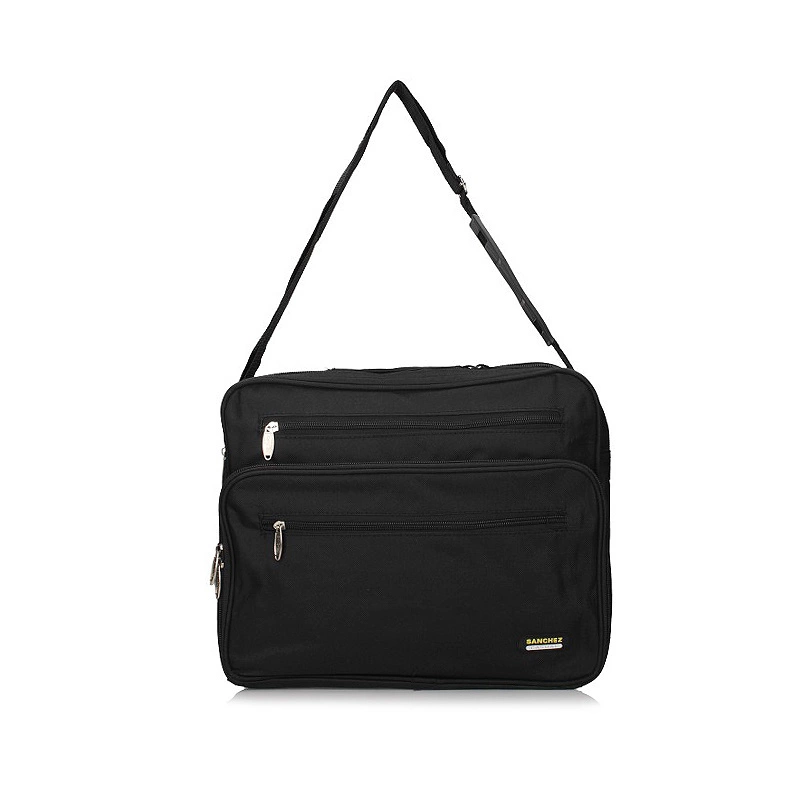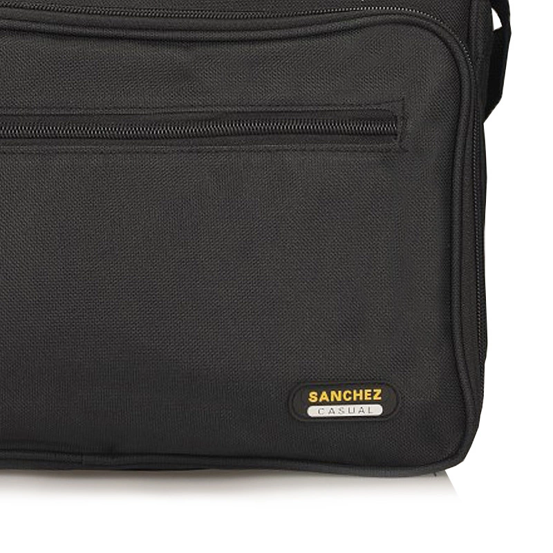 Znana oraz lubiana marka Sanchez przedstawia nam torbę z najnowszej kolekcji. Model w kolorze czarnym wykonany został z wysokiej jakości materiału tekstylnego. Fason posiada dwie główne komory zapinane na zamek. Dodatkowo z przodu znajdują się trzy kieszonki zapinane na zamek, idealnie sprawdzą się na męskie drobiazgi. Długi pasek dołączony do torby posiada możliwość regulacji. Na przodzie umieszczono logo marki.