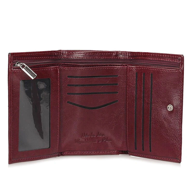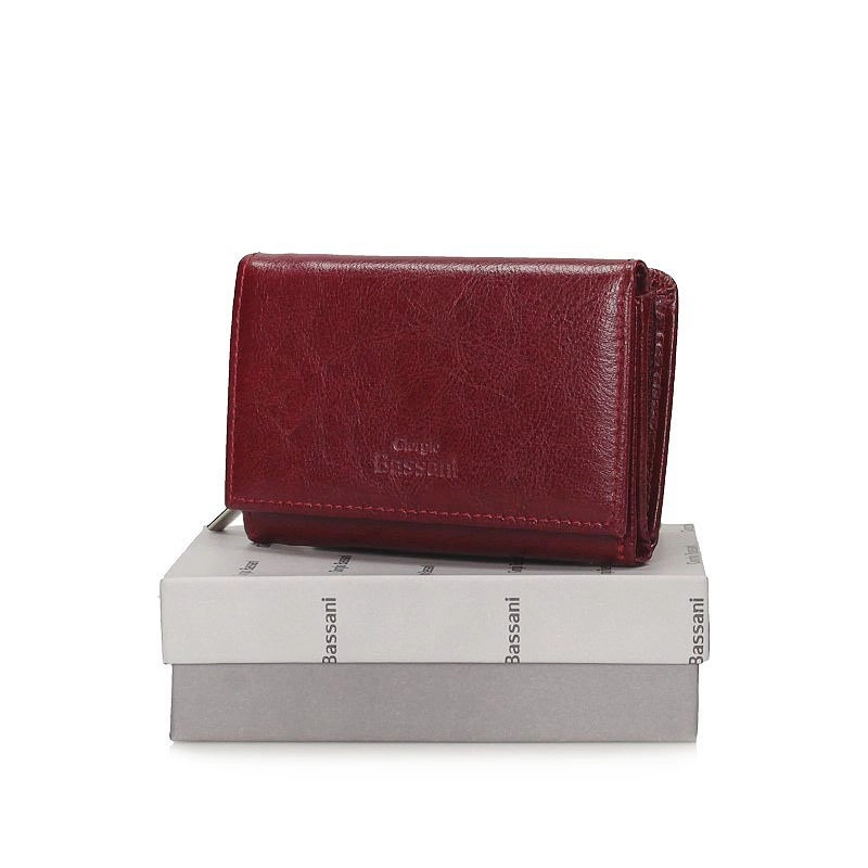 Portfel marki Giorgio Bassani wyprodukowany z wysokiej jakości naturalnej licowej miękkiej skóry. Uwagę przykuwa piękny oryginalny kolor czerwony. Idealny pomysł na prezent dla bliskiej nam osoby. U producenta można znaleźć wysokiej klasy produkty, łączące funkcjonalność z ekskluzywną stylistyką, zarówno dla wielbicielek klasycznej elegancji jak i amatorek nowoczesnego wzornictwa. Zapinany na solidny zatrzask. Wewnątrz wyposażony w: przegrody na banknoty, miejsca na karty kredytowe, miejsce na zdjęcie, przegrody na dokumenty, zapiski, duża komora na bilon zapinana na zamek.