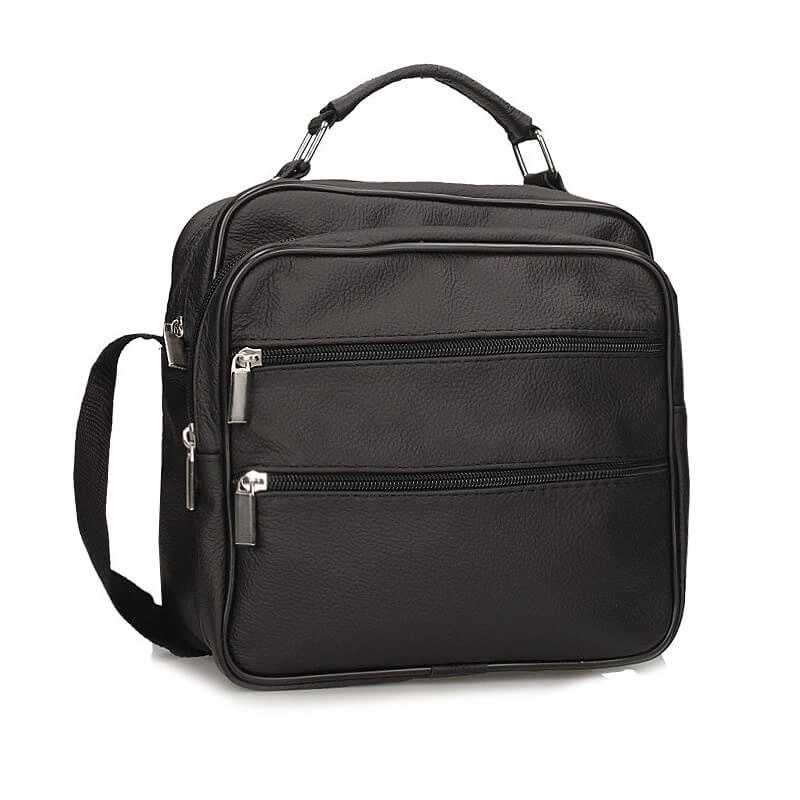 Męska czarna torba wykonana z naturalnej licowej skóry w czarnym kolorze.