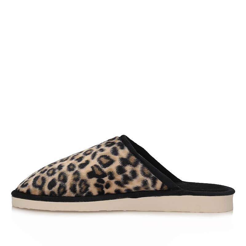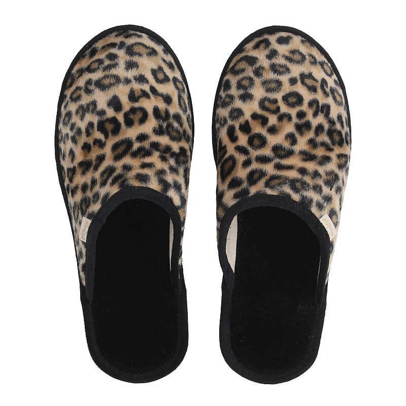 Bardzo modne i kobiece kapcie domowe w panterkowy wzór to model idealny dla kobiet, które lubią czuć się wyjątkowo, stylowo, ale i wygodnie w domowym zaciszu. Całość wykonano z naturalnego materiału bardzo przyjemnego w dotyku, przypominającym materiał welurowy. Kapcie są bardzo lekkie przez co są wyjątkowe i bardzo lubiane przez kobiety. Pełny zaokrąglony nosek zapewnia stopom ciepło w chłodne dni. Podeszwa płaska, dopasowująca się do stopy. Niezastąpione podczas domowego relaksu.