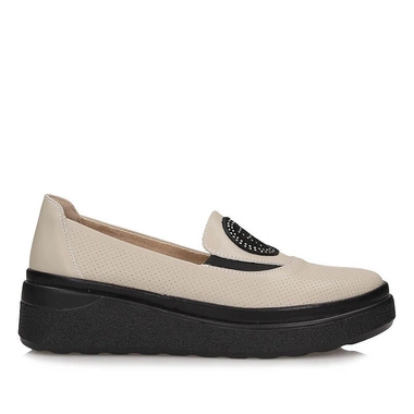 Półbuty na klocku Potocki 25-12553 BGP beżowe z czarną lamówką
