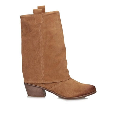 Modne Skórzane Kowbojki Botki EXQUISITE 1553 welur koniak