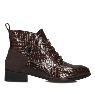 Skórzane sznurowane Botki damskie EXQUISITE 819-RUSTIC23.Beż