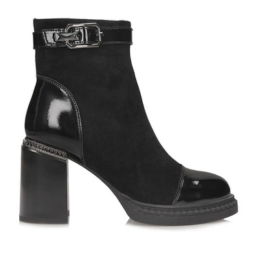 Botki czarne lakierowane Artiker 55C0064 ocieplane na obcasie