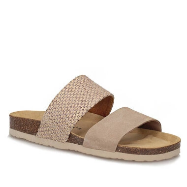 Modne damskie klapki Sca'viola na grubszej podeszwie L-37 beżowe